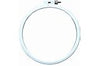 A light blue, round plastic embroidery hoop with a diameter of 10 inches. It is designed for use in hand embroidery projects. The hoop features a molded plastic construction, which is said to provide a soft surface and a tight grip on the fabric. The Super Grip Lip design ensures that the project will stay securely in place while stitching. The hoop is made in the USA and comes with a manufacturer warranty for use within the United States only