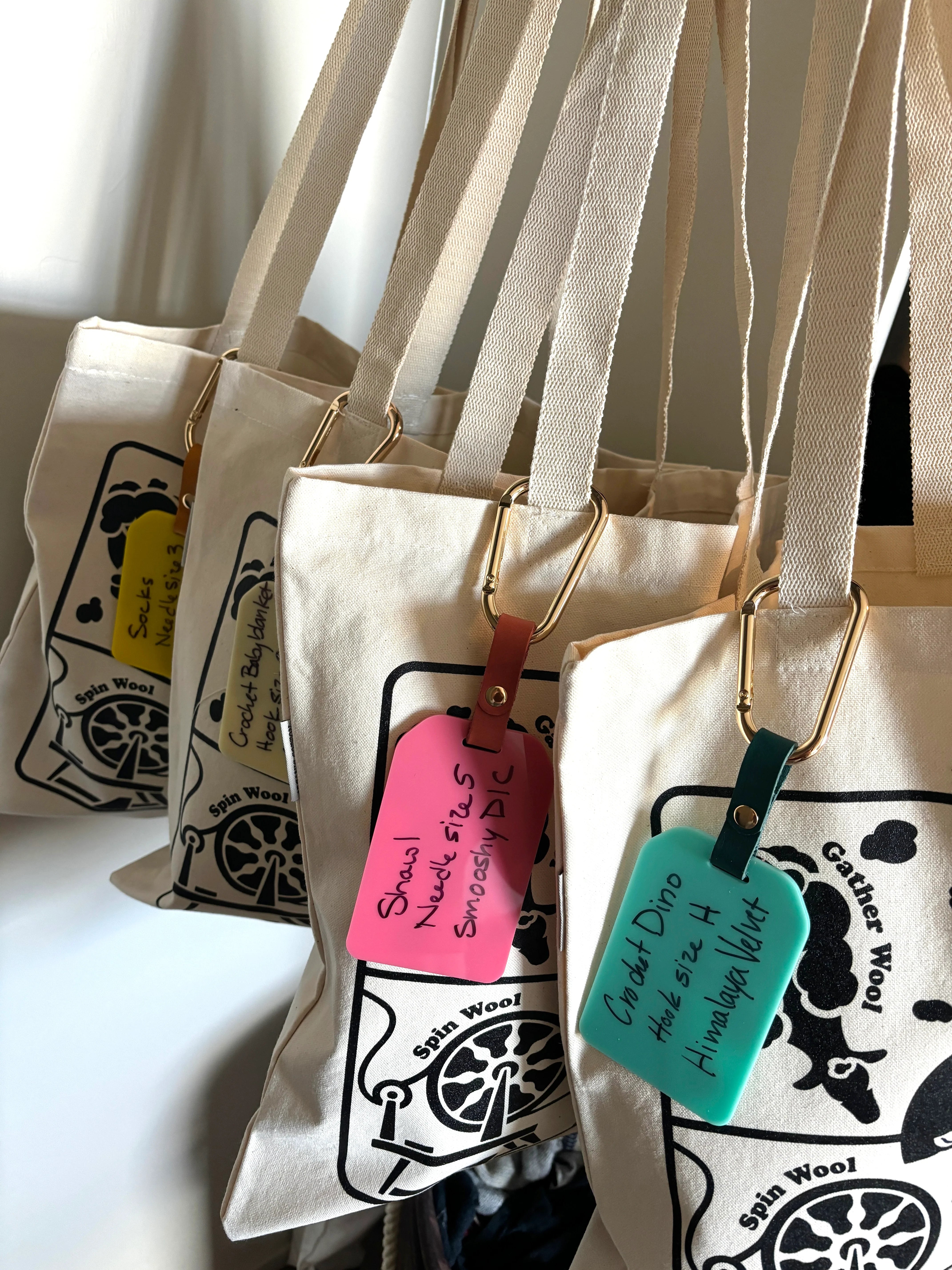 Elevate your crafting organization with our durable acrylic bag tag. Designed to help you keep your project bags clearly labeled and easily accessible, this tag is a must-have for every fiber artist. Each tag comes with a mini Sharpie for permanent labeling, ensuring your project details won't rub off. Plus, an alcohol wipe is included for effortless cleaning and re-labeling whenever needed.