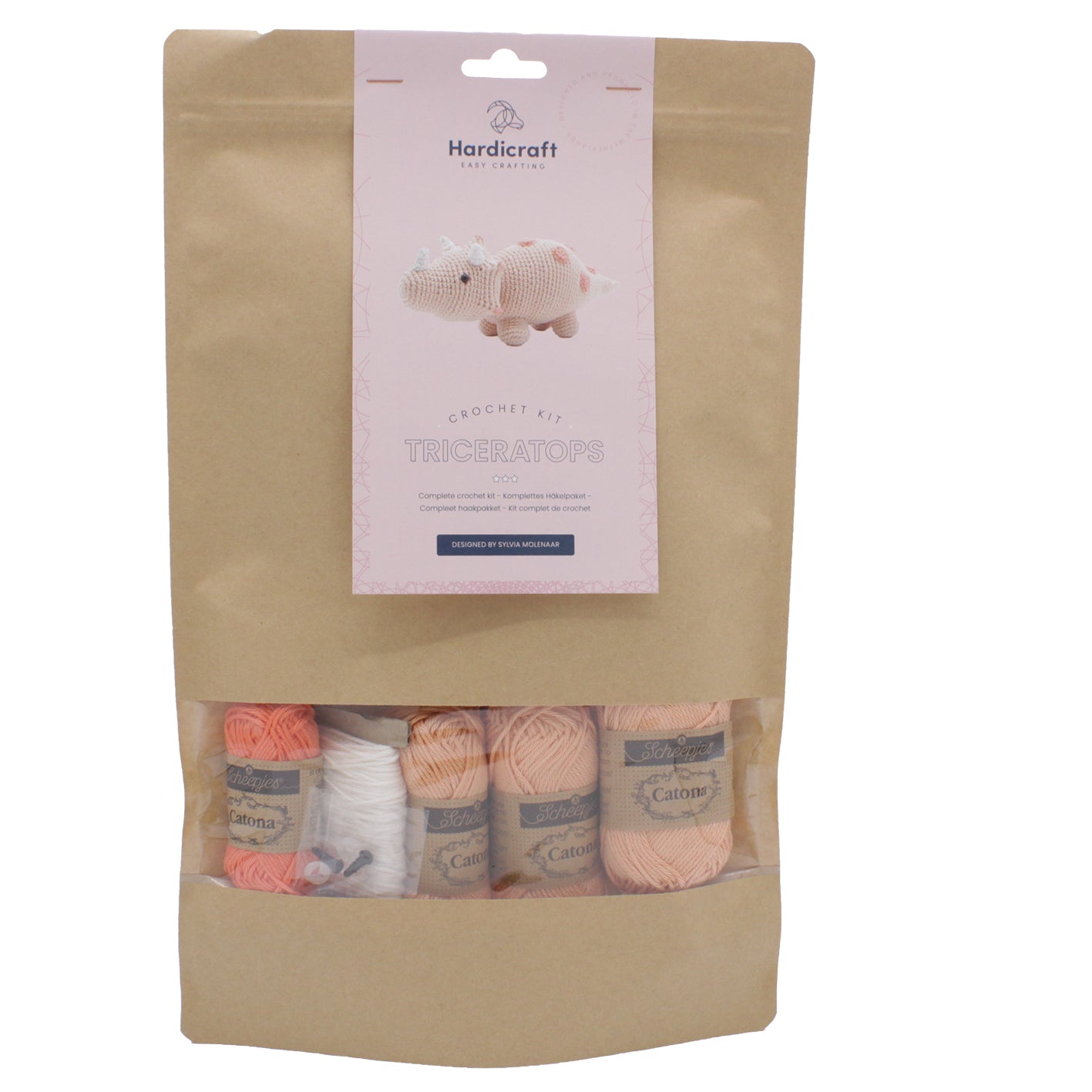 Bring the Triceratops back to life with your next crochet project! The Triceratops makes an excellent gift for the dinosaur enthusiast in your life. This kit contains a pattern, quality 100% cotton yarn, and all of the materials needed to get to work (excl. crochet hook). The Triceratops is approximately 24 cm long and is made with a 2.5 mm crochet hook.