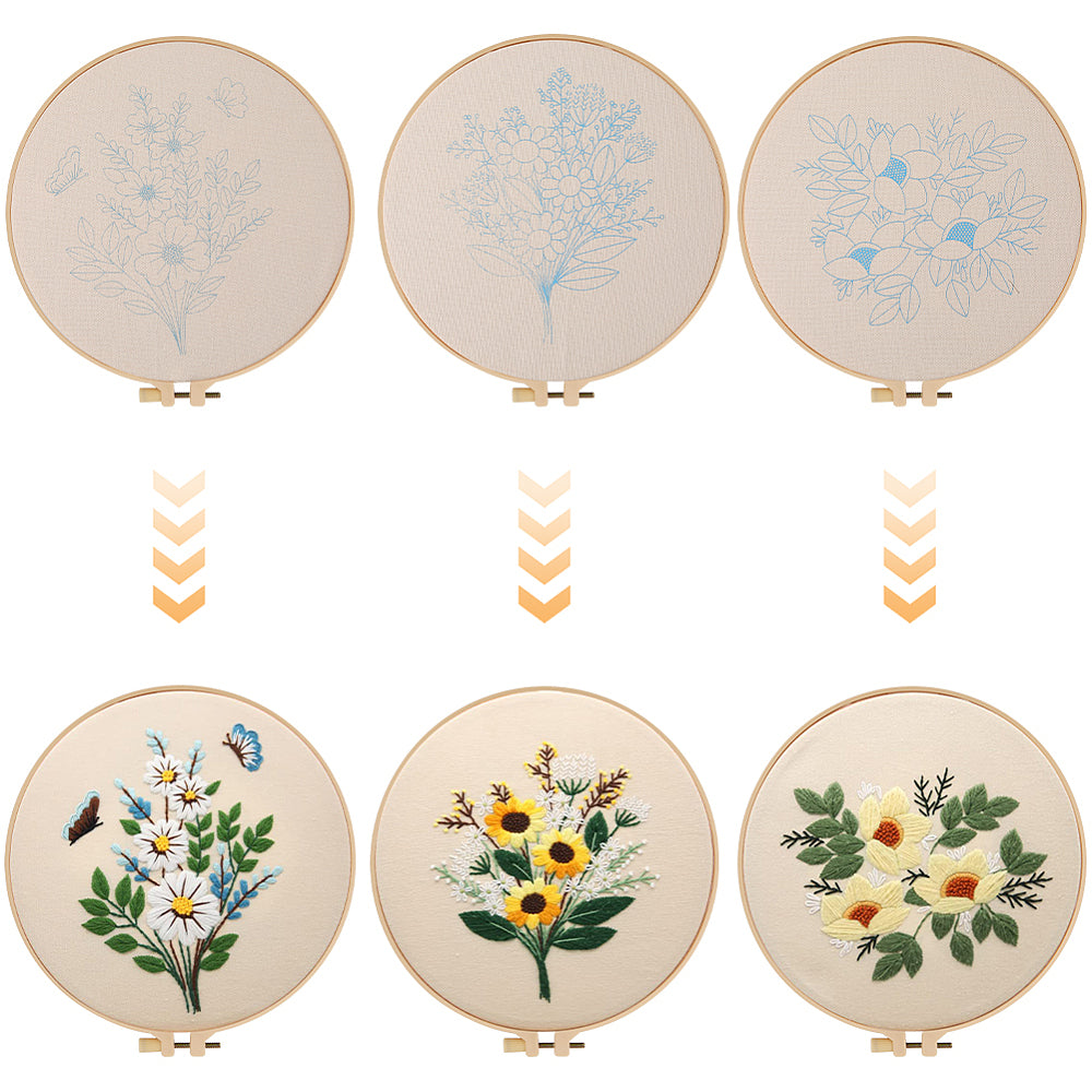 Garden Bloom Embroidery Starter Kit – 3-Pack Floral Collection