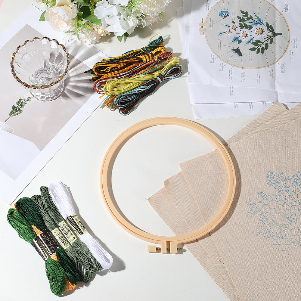Polished Embroidery Hoops: Sturdy hoops (7.87 inches or 200mm) are included to keep your fabric at the perfect tension, preventing puckering and ensuring even stitches.
