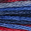 A variegated six-strand floss. Each combines four complementary colors so you can create patterns without changing thread.